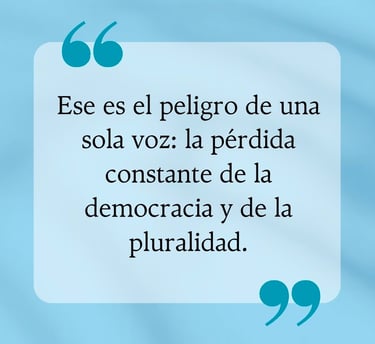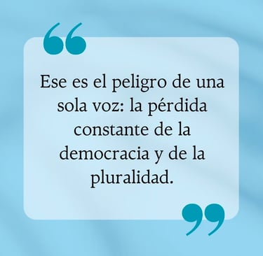 Ese es el peligro de una sola voz: la pérdida constante de la democracia y de la pluralidad.